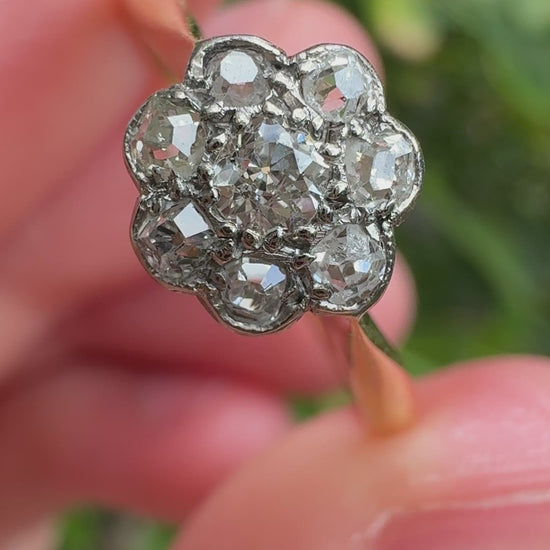 Antique 18ct yellow gold 0.4ct TCW old mine cut and single cut diamond daisy cluster ring