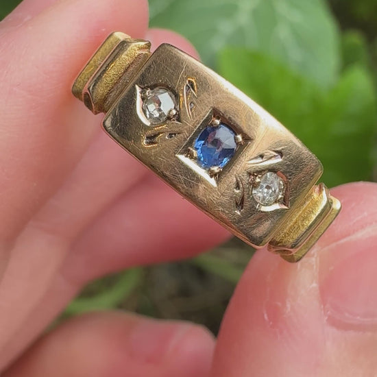 Antique Australian 15ct rosy yellow gold natural sapphire and old single cut diamond gypsy ring