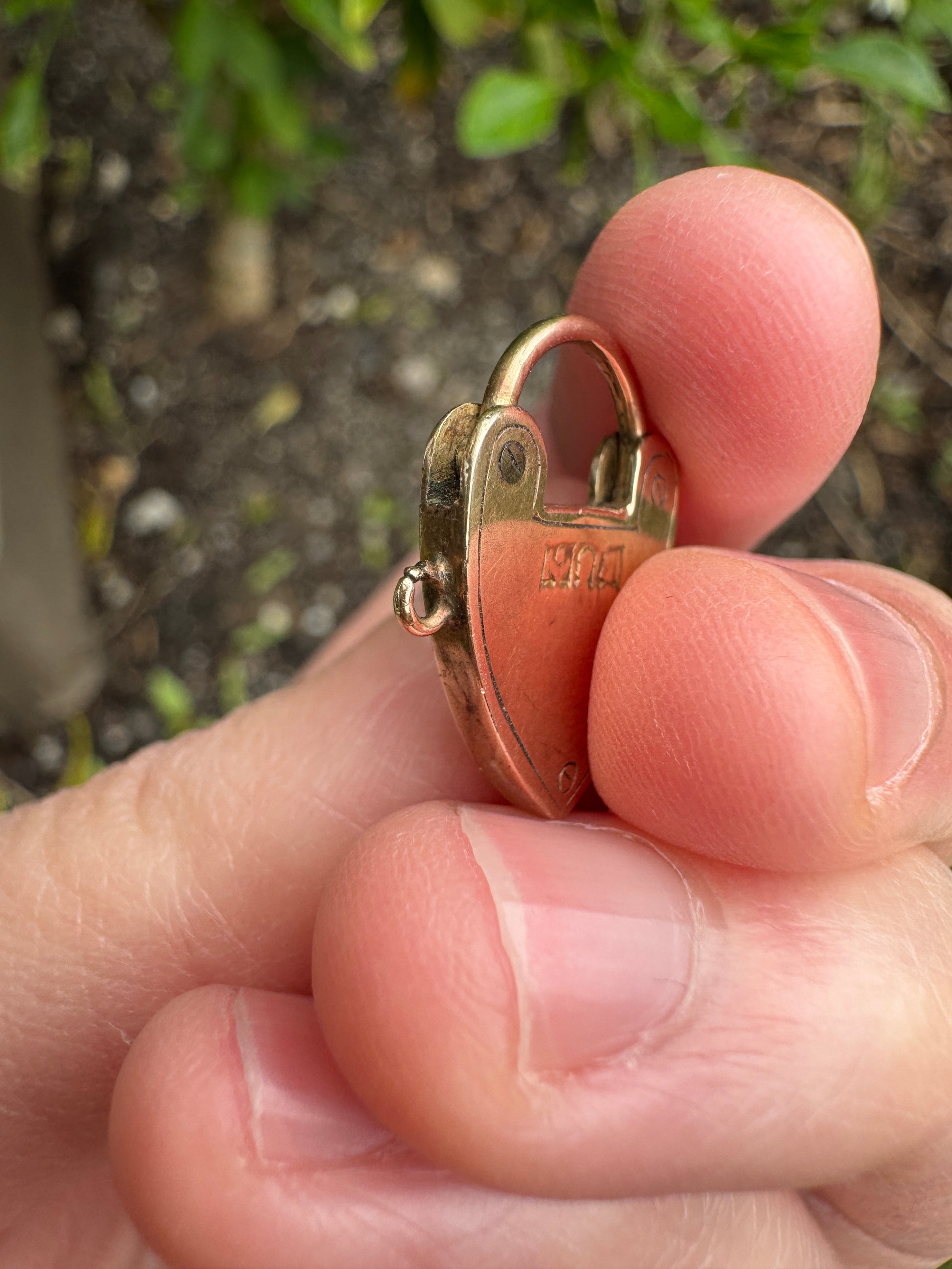 Antique Australian 9ct rosy yellow gold engraved padlock pendant
