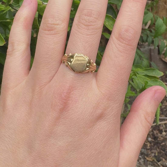 There's something effortlessly gorgeous about a gold signet ring, and this one captures that vibe perfectly! Crafted in solid 18ct gold, it has a lovely weight and incredibly smooth feel that makes it a joy to wear. The surface has developed a beautiful patina over time, giving it a soft glow that looks luxurious and elegant. An English-made classic that's refined, comfortable and a wonderful every day piece!