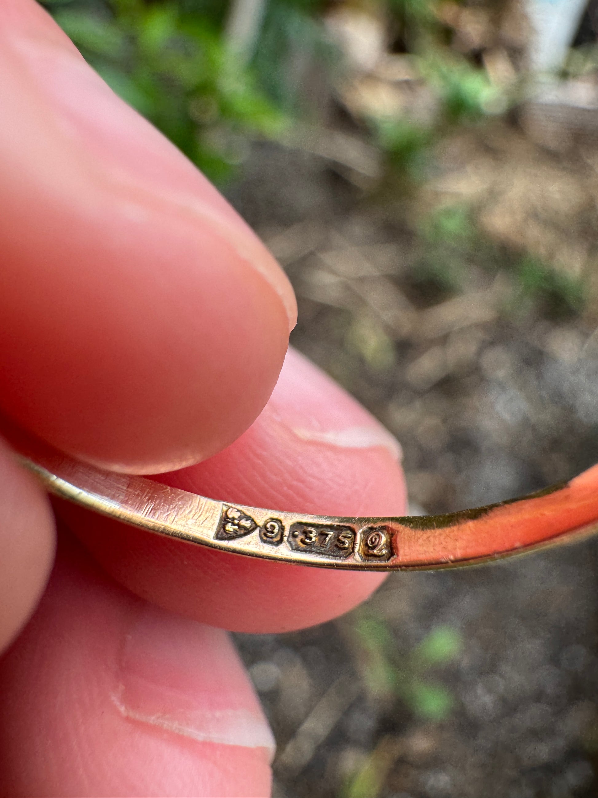 Markings: Full English hallmarks for 9ct gold, Chester, 1916, T&G maker's mark