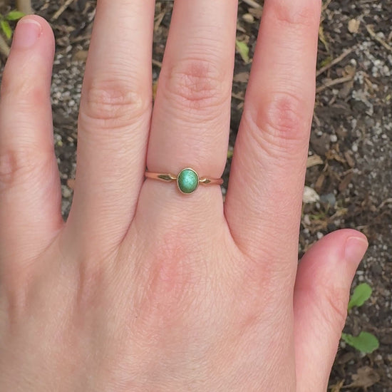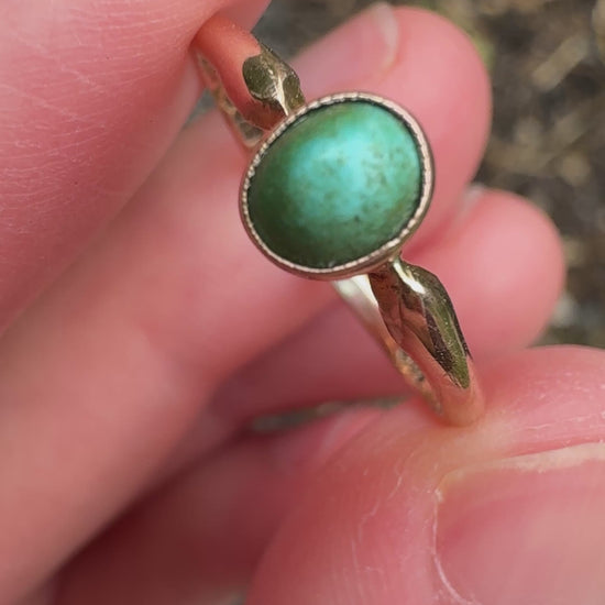 Antique English 9ct rosy yellow gold turquoise cabochon ring