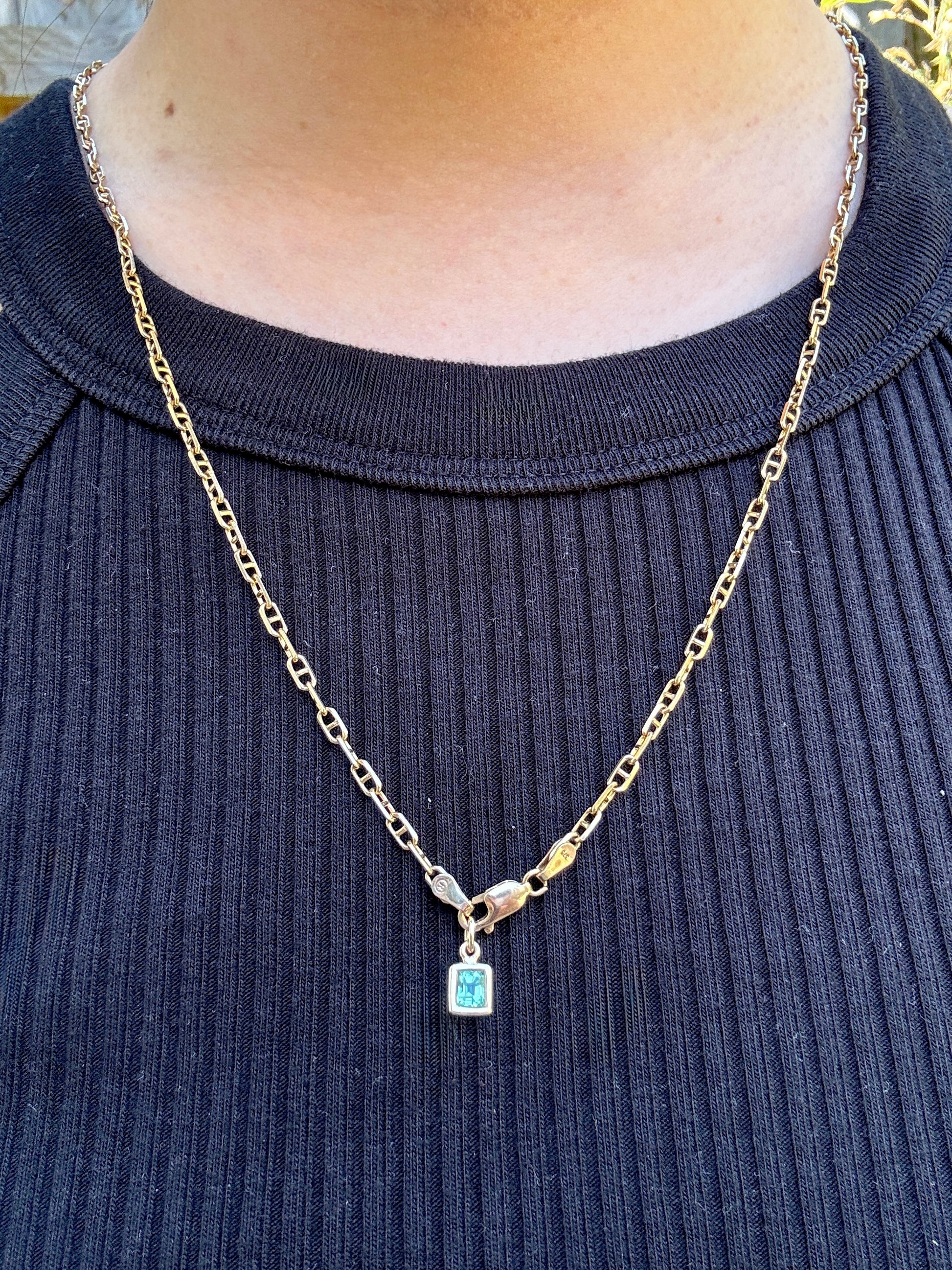 Size: Pendant face measures 6.2mm L x 5.5mm W. Whole pendant including bail and jump ring measures 12.2mm L. Oval jump ring is 3.5mm.