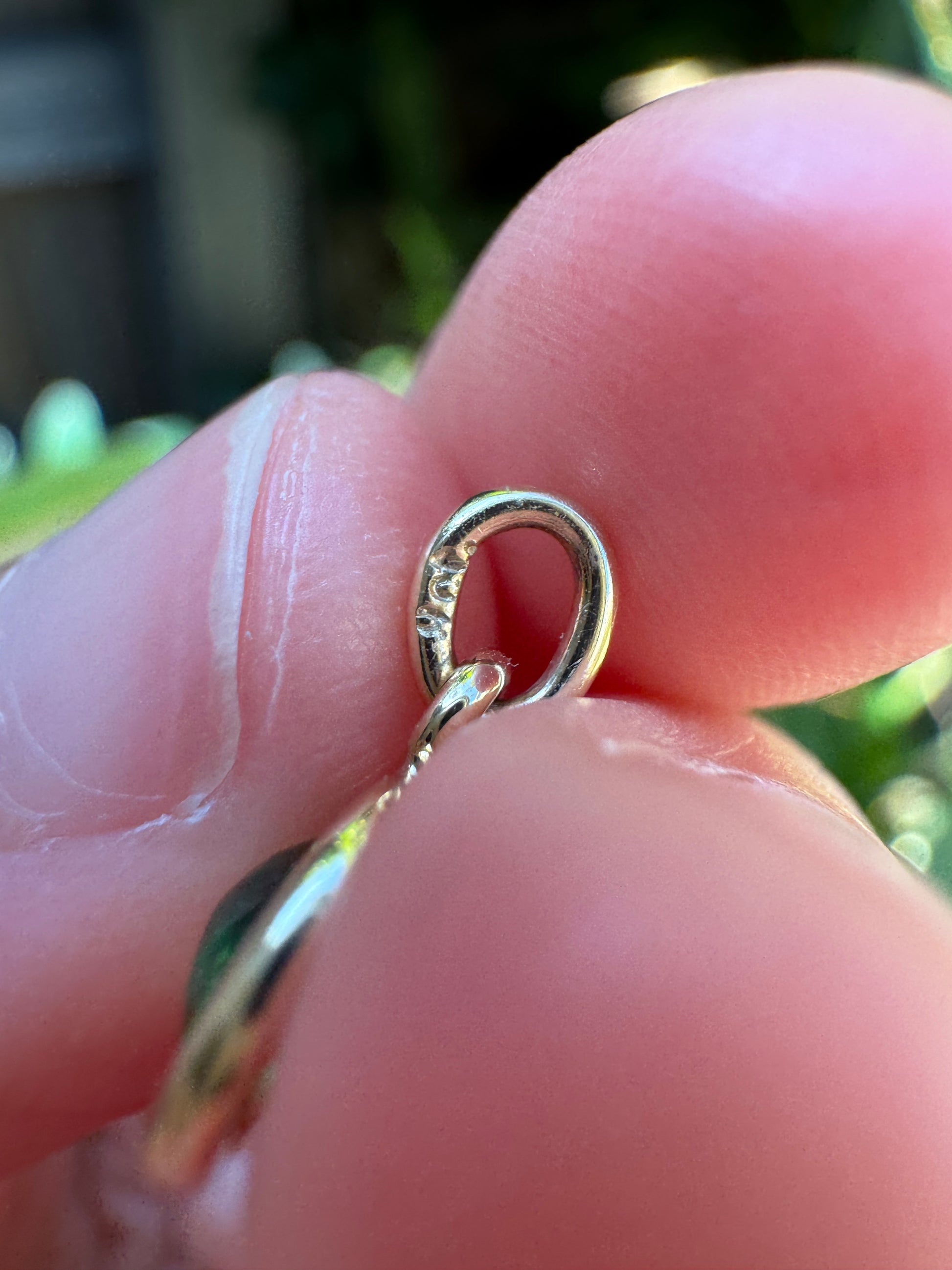 Size: Pendant face measures 7mm L x 6mm W. Whole pendant including bail and jump ring measures 12mm L. Oval jump ring is 3.5mm.