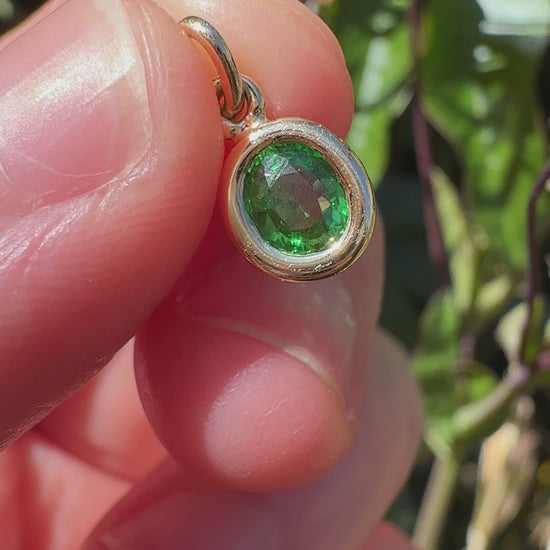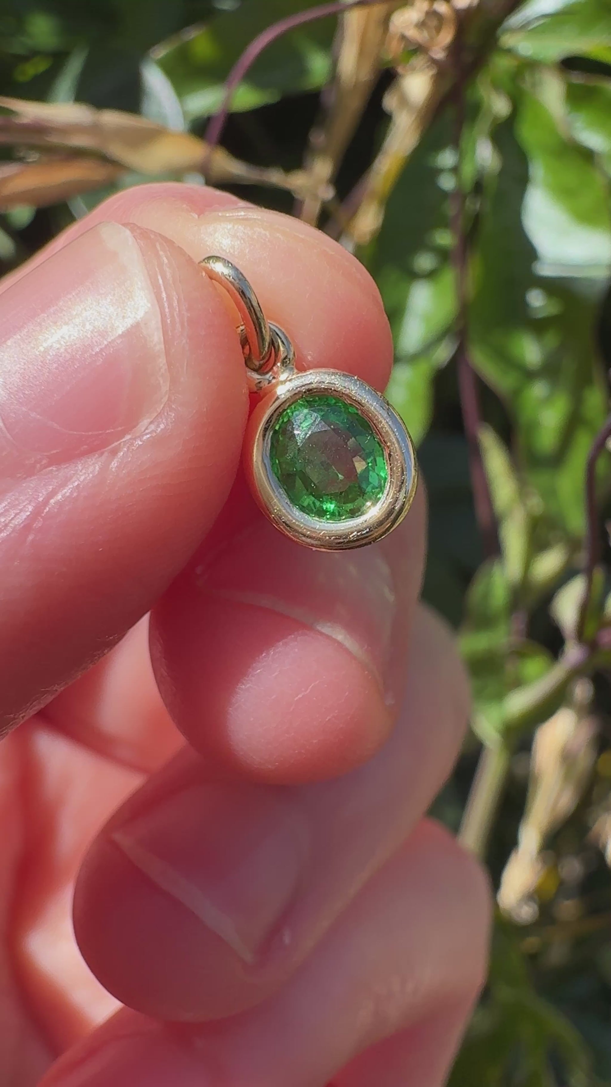 A stunning pop of colour for your favourite chain (or maybe even a bracelet or hoop earring!), this 0.47ct natural tsavorite garnet pendant was handmade from scratch here in Melbourne, Australia by our amazing jeweller. Beautifully set into recycled 9ct gold with a gorgeous handcrafted bezel and an open back, this stunning stone truly shines. The perfect pendant to brighten up any look!