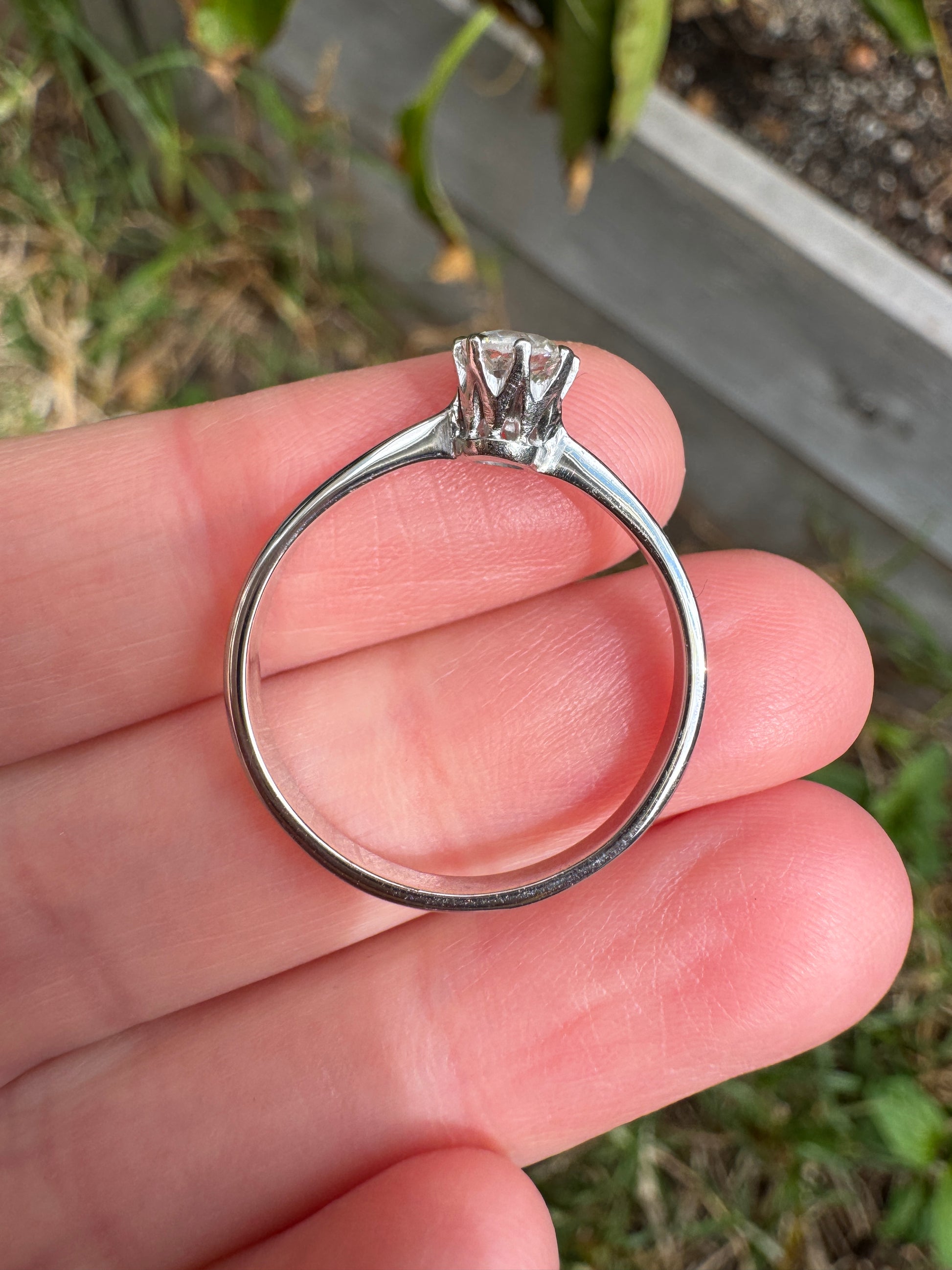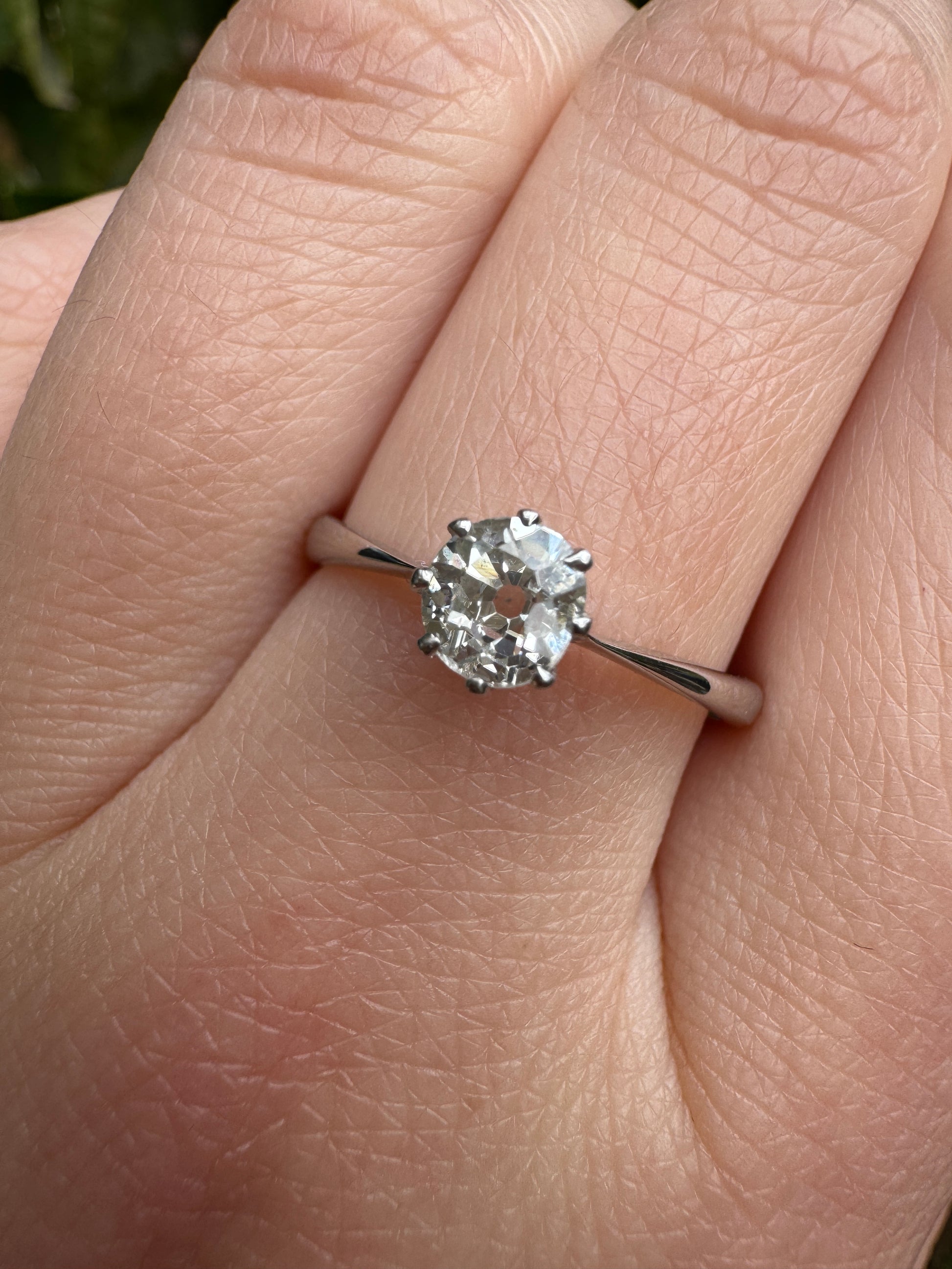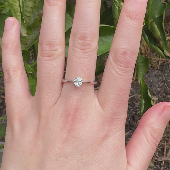 If you're looking for a beautiful solitaire, look no further! This vintage piece features a gorgeous 0.57ct old mine cut diamond (natural/earth mined, SI1 clarity, G colour) in a classic prong setting. The stone sparkles beautifully and has a wonderful presence on the hand. It would make a gorgeous engagement ring, but is also so worthy of being a treat yourself moment!