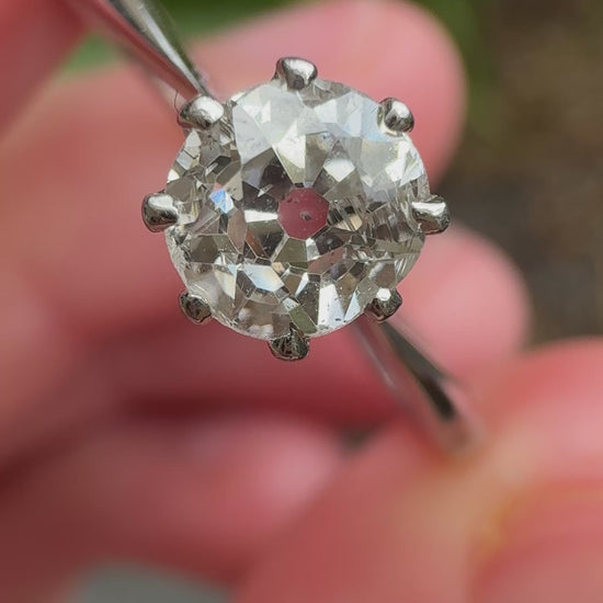 Vintage 9ct white gold 0.57ct old mine cut diamond solitaire ring