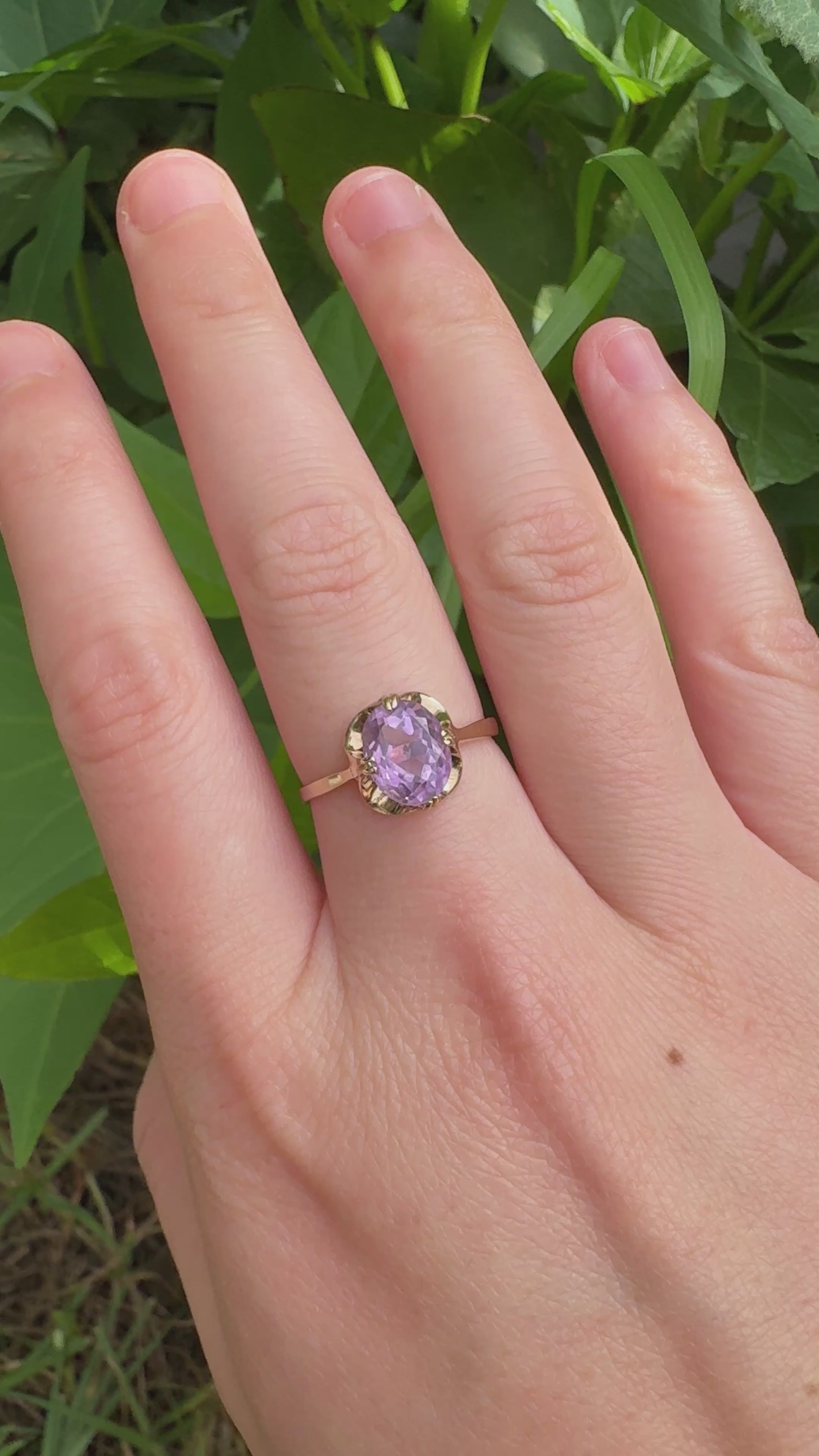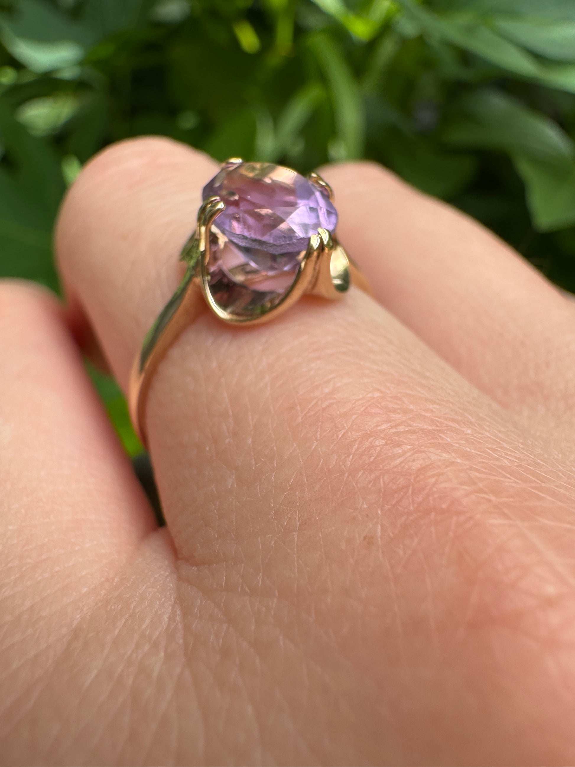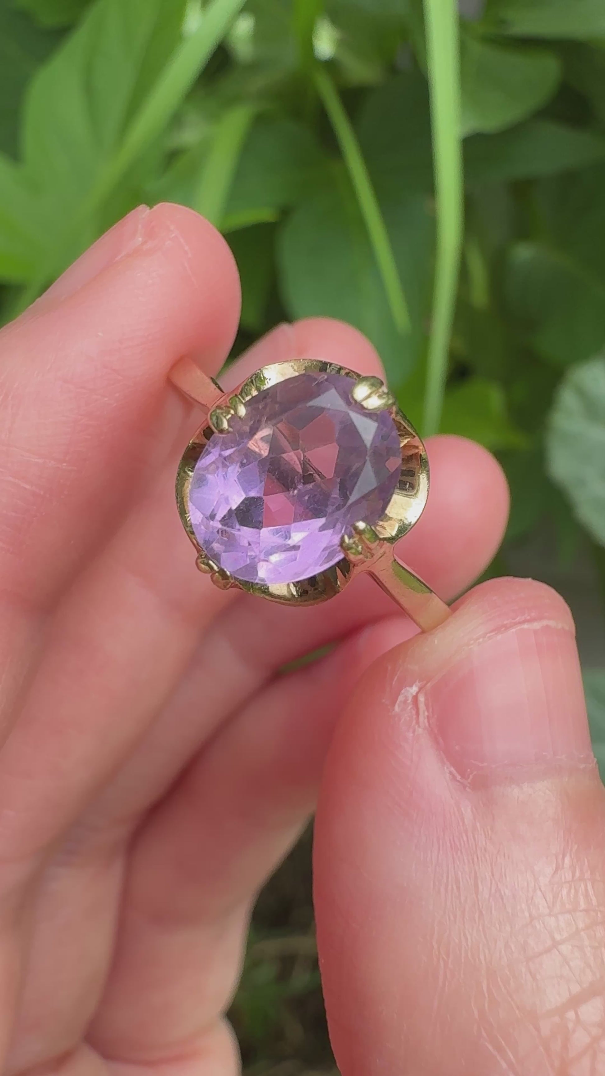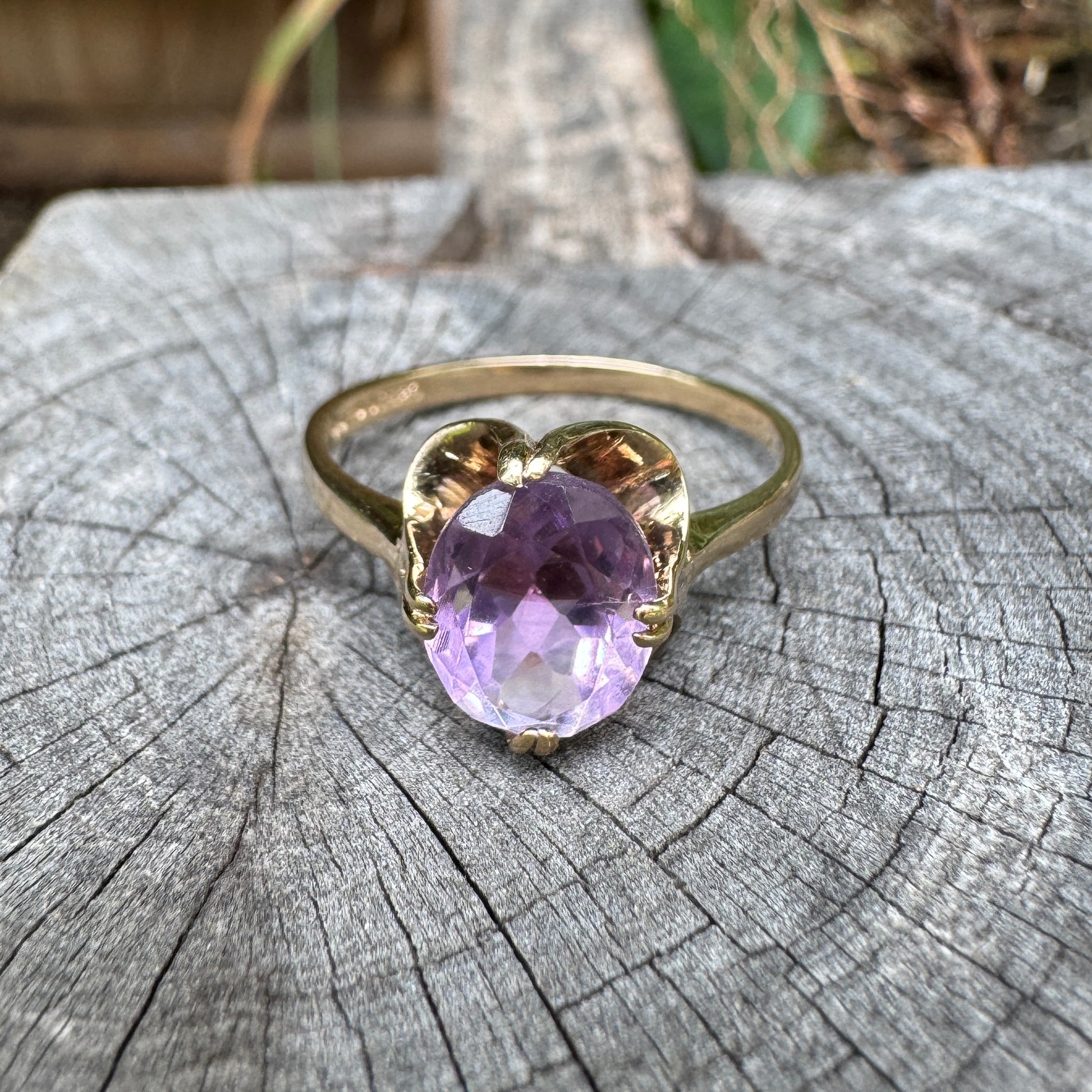 Vintage English 9ct yellow gold 1.81ct amethyst buttercup ring
