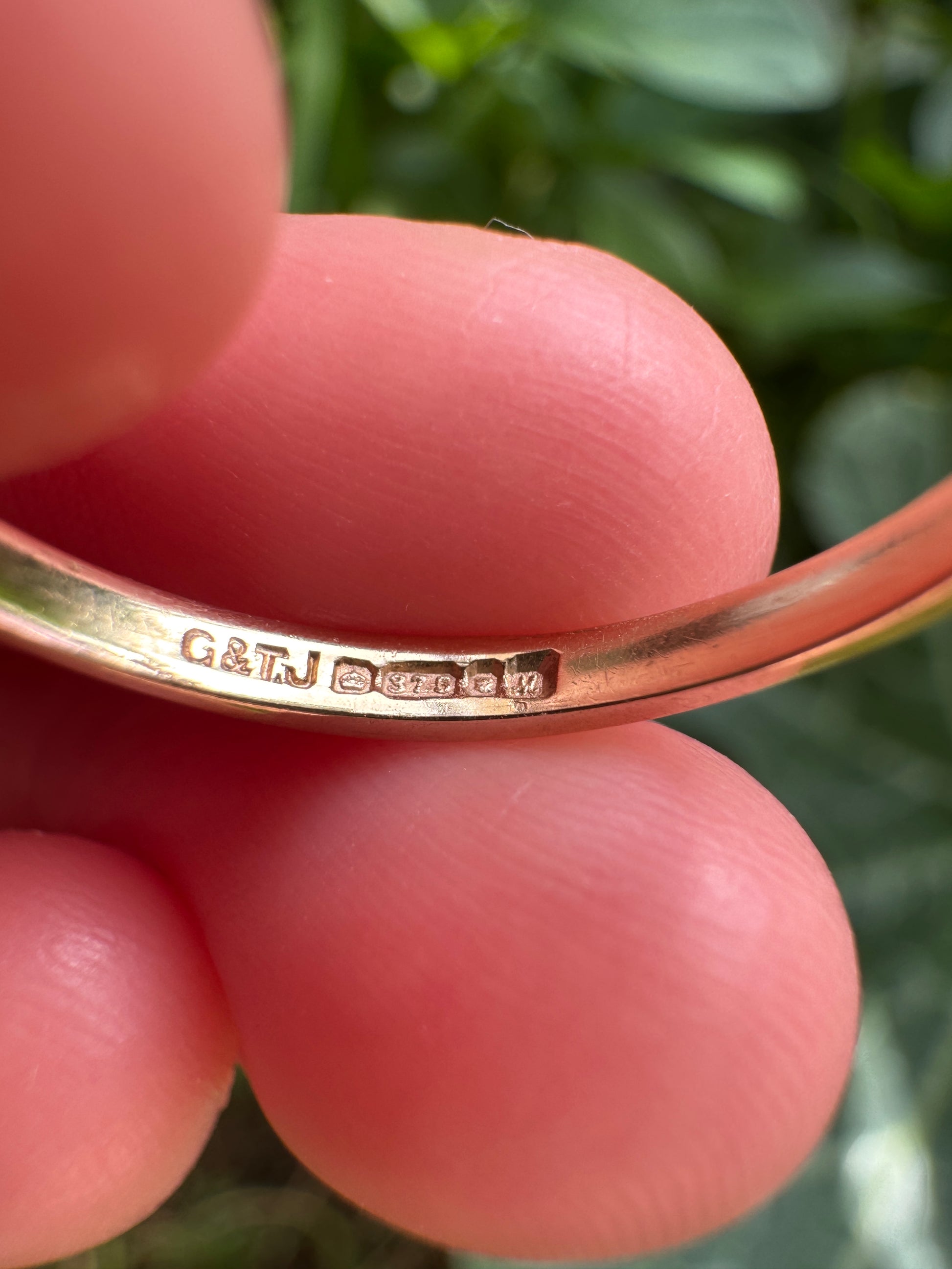 Markings: Full English hallmarks for 9ct gold, London, 1986, G&T.J maker's mark