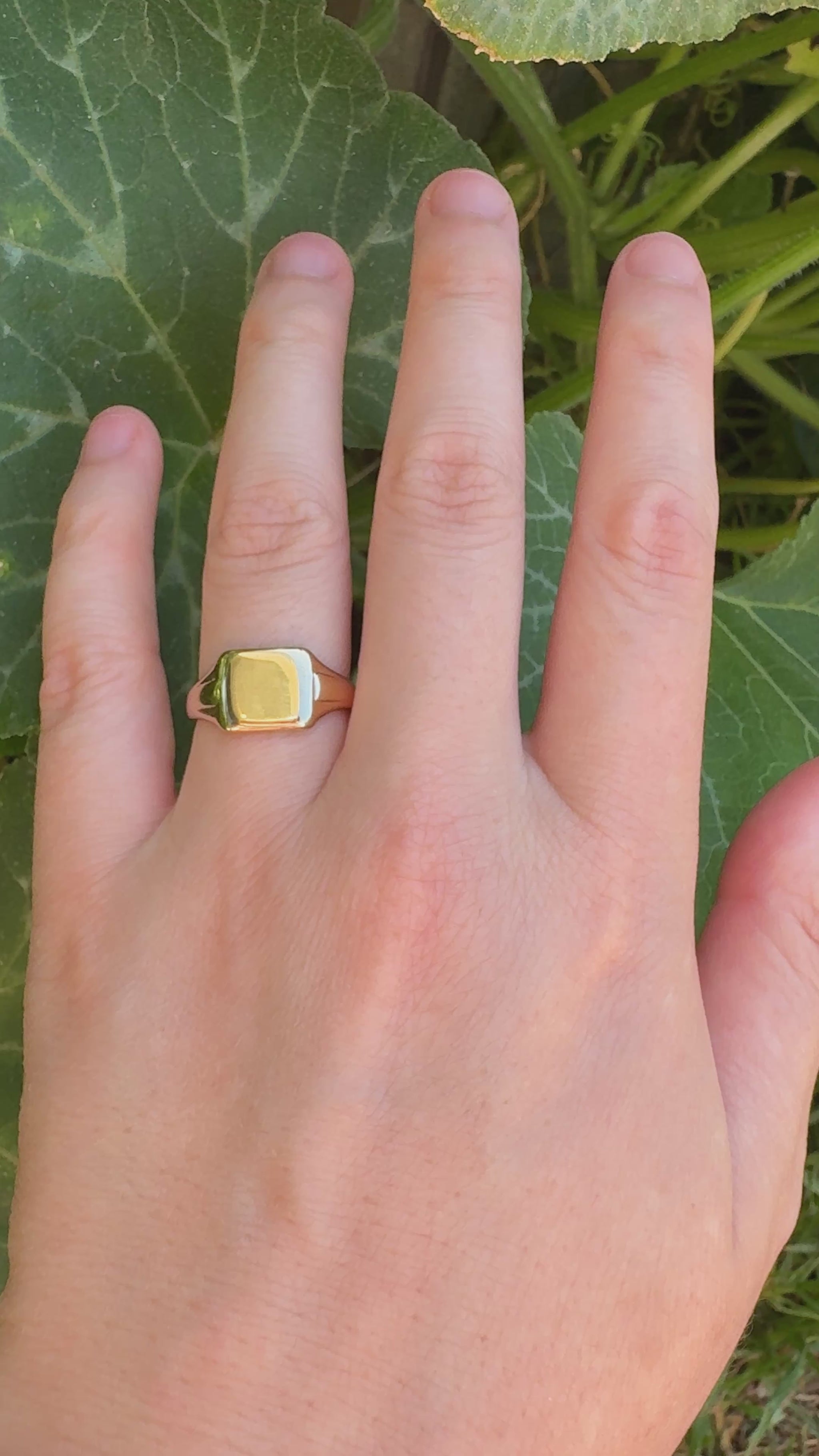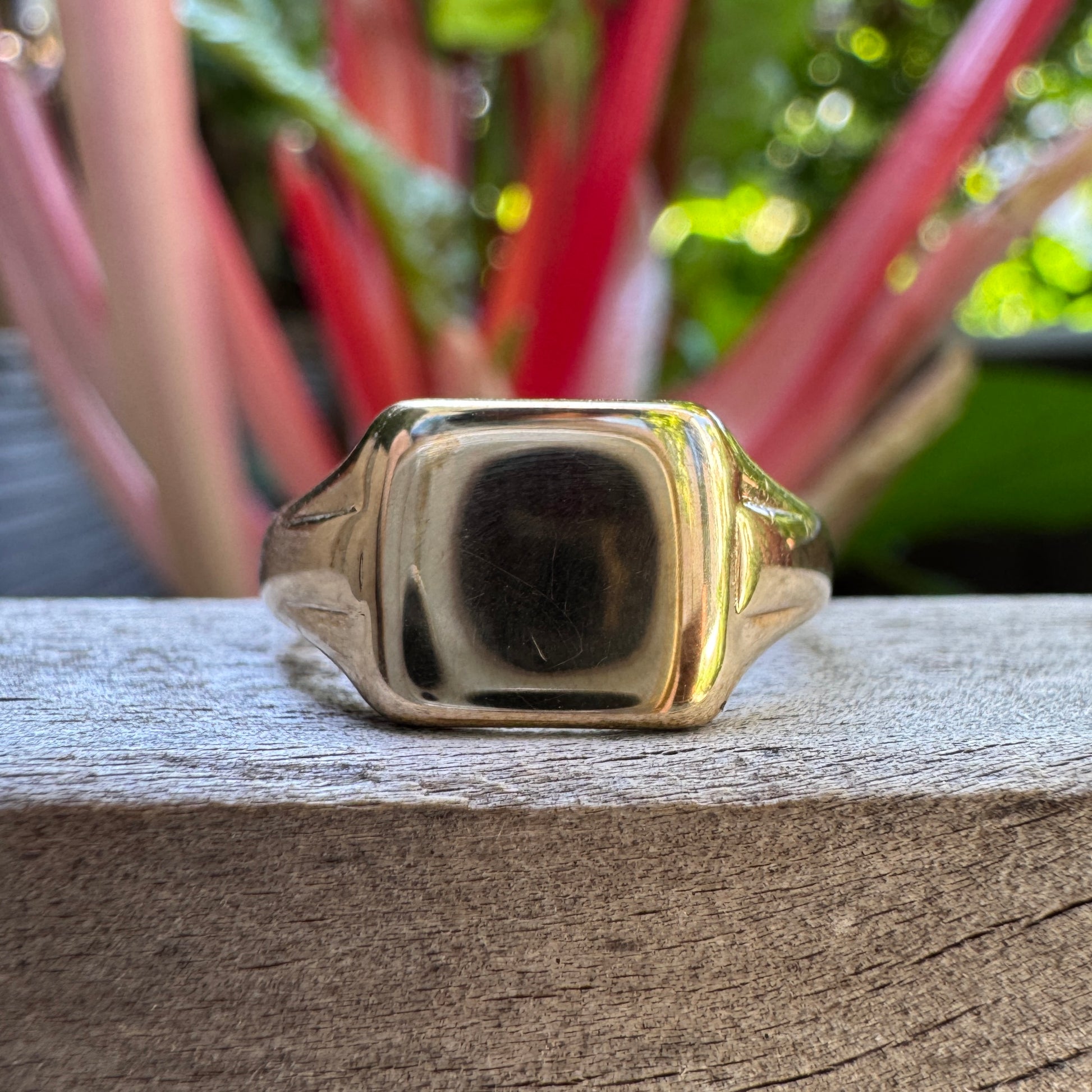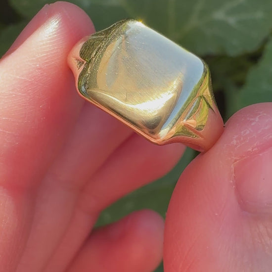A classic English signet with a clean square face and satisfyingly smooth and solid feel on the hand. The shoulders are softly tapered and the proportions are absolutely gorgeous - substantial without feeling bulky, and easy to wear every day.