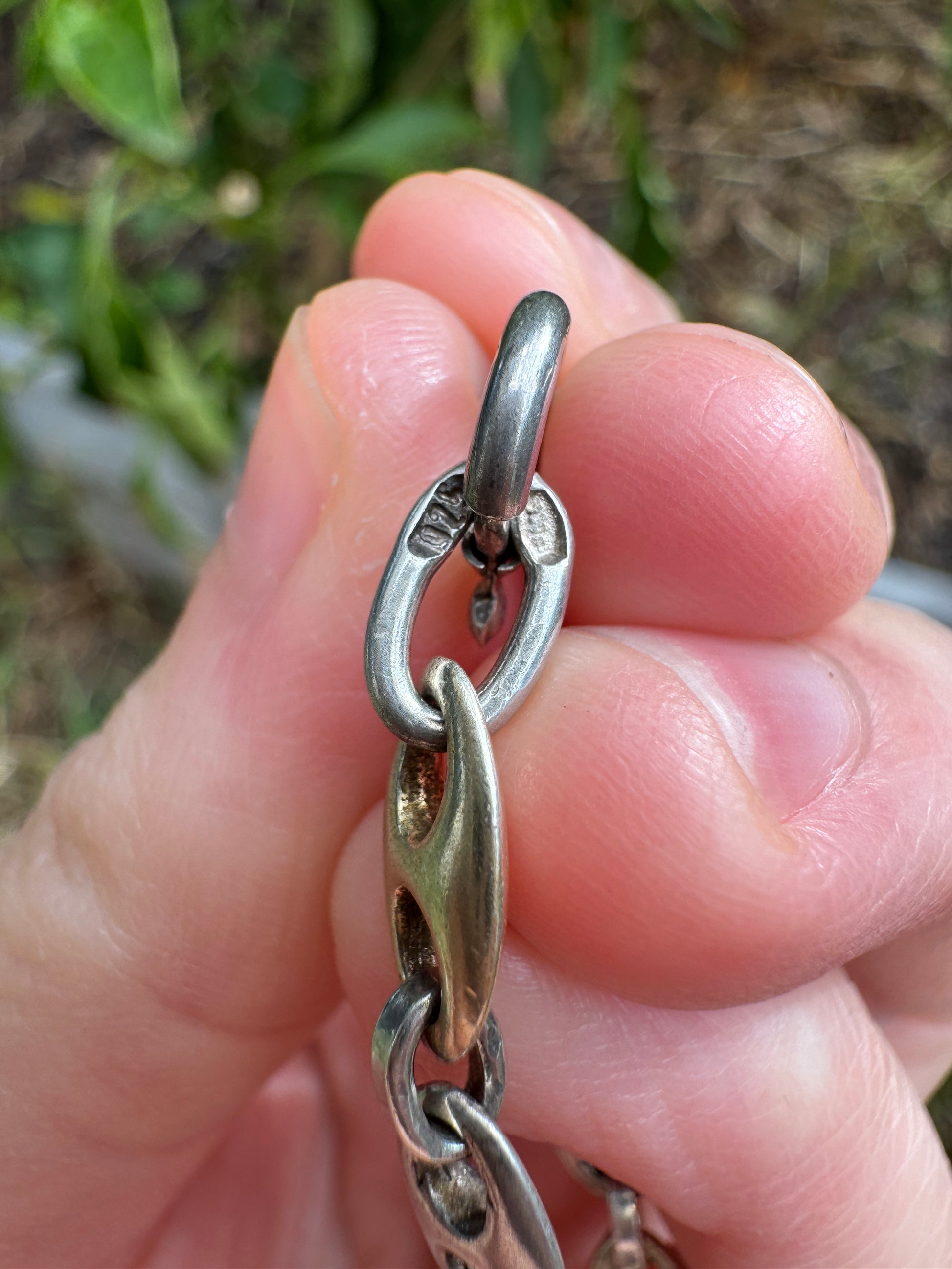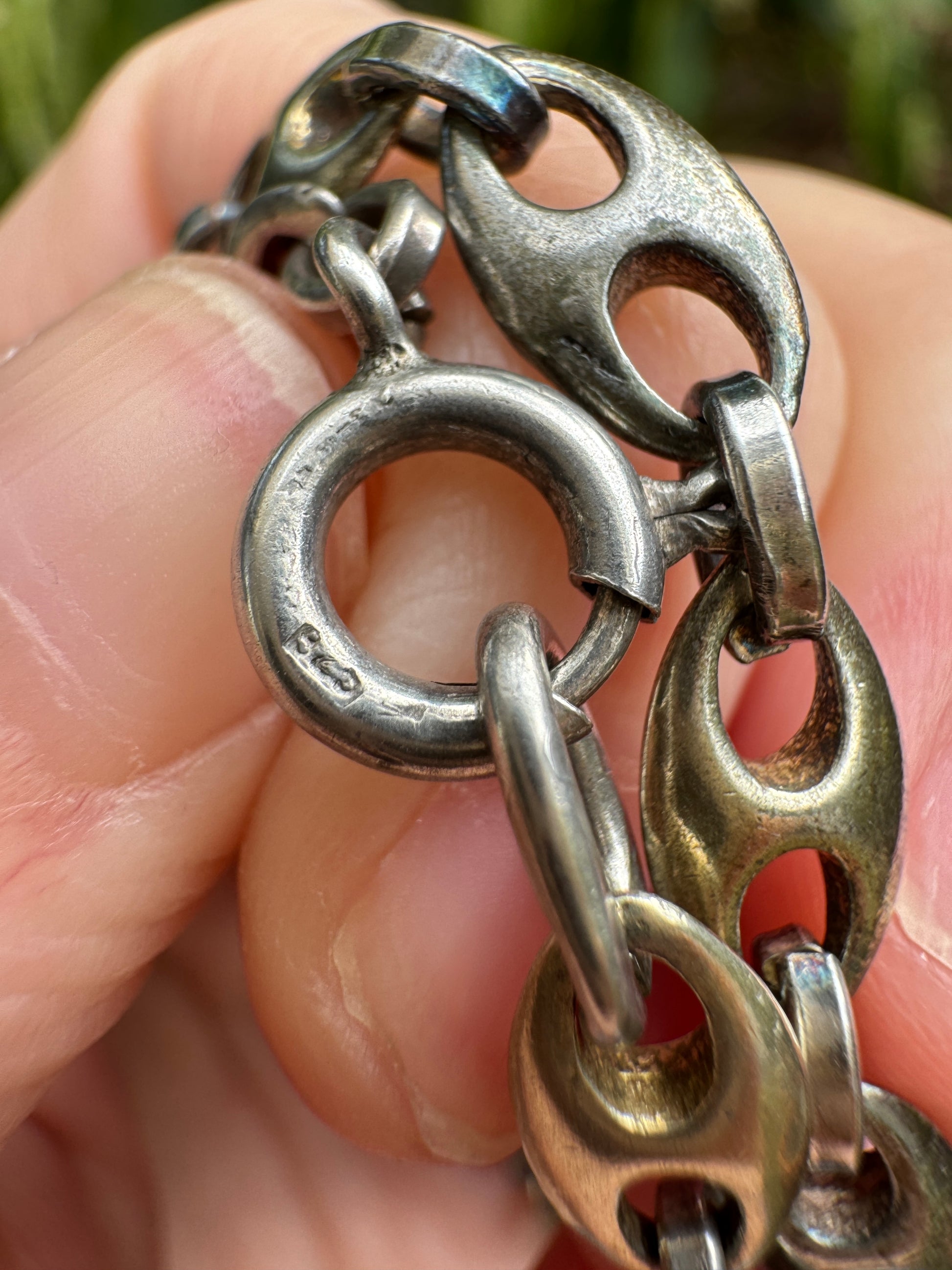 Vintage silver two tone puffy mariner/Gucci link chain, 72cm / 28.35 inches long